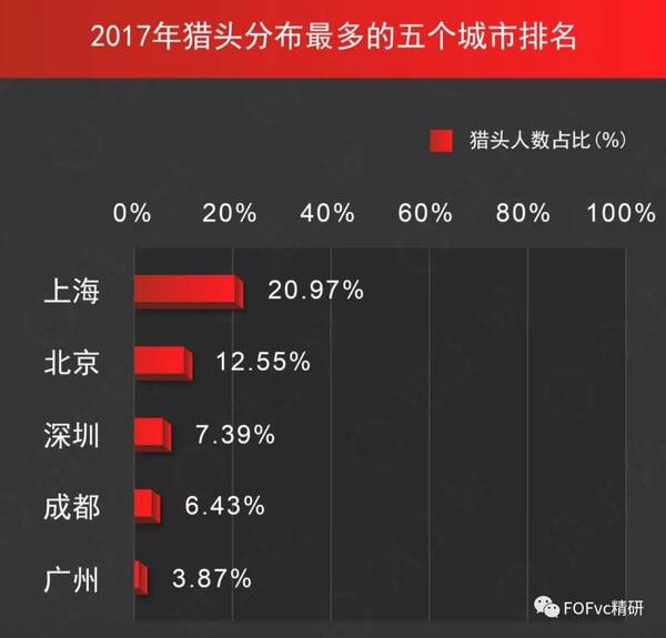 过去一年有大量的猎头获得百万以上的佣金报酬,在这些行业精英中,上海猎头占比26%,超过1/4,紧随其后的是北京(18%)、成都(15%)、深圳(10%)和南京(7%)这五座城市。