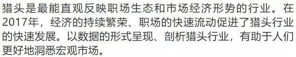 市场将持续繁荣:优秀管理人才的缺口巨大,A轮公司给薪能力高,这在很大程度上说明2017年很好地延续了创新创业的势头,2018年会成为市场相对繁荣的一年;