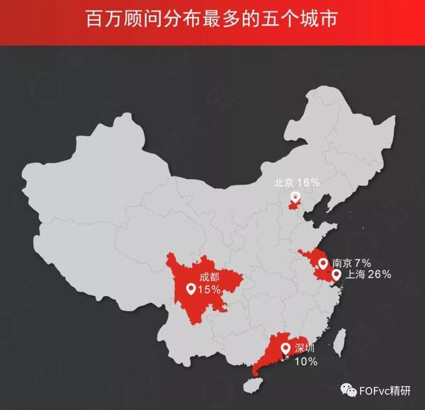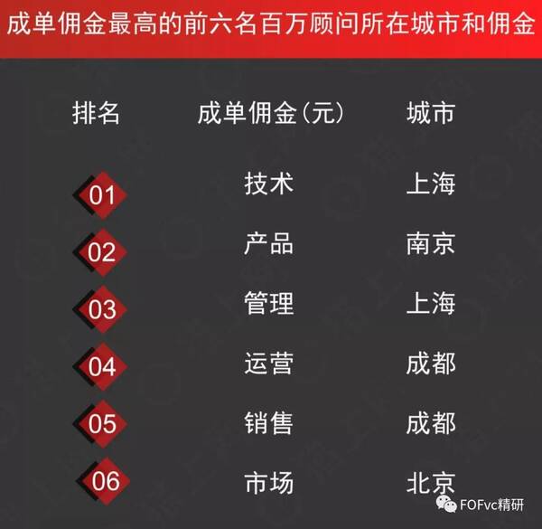 在这五大猎头“金矿城市”中,百万顾问平均佣金最高的是北京,突破了170万,然后是上海、南京和成都,最少的深圳也有111万。可以看到,虽然上海的百万级顾问多,但是北京的百万顾问更赚钱。