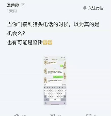 一位员工就曝光了一个猎头参与的裁员陷阱,告诉大家接到猎头电话的时候,以为真的有机会就天真了,也有可能是陷阱。因为一些公司需要裁员就跟猎头公司,直接发名单给猎头,让猎头帮这些员工弄离职。