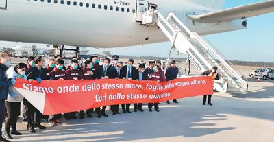 就在意大利新冠肺炎疫情持续蔓延的紧张时刻,中国“逆行者”及时赶到了。由国家卫生健康委和中国红十字会组建的专家组一行9人携带必要医疗防护用品等物资从上海飞赴罗马,支援意大利新冠肺炎疫情防控工作。这是继支援伊朗、伊拉克之后,中国派出的第三支专家团队。